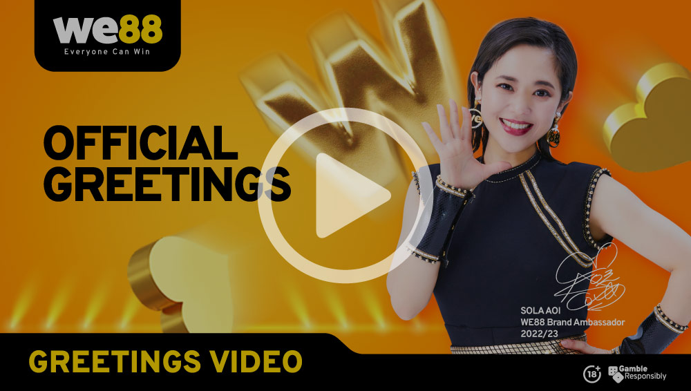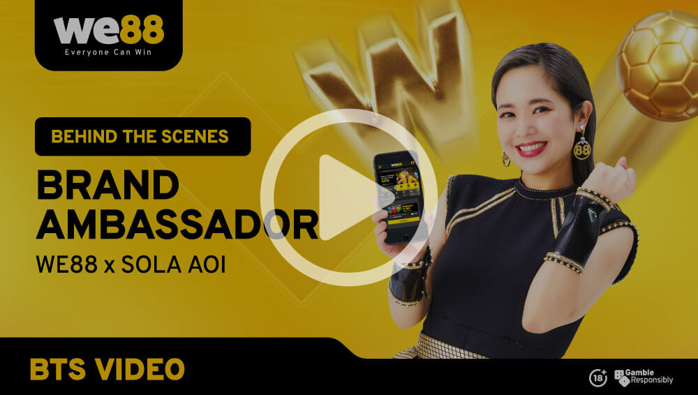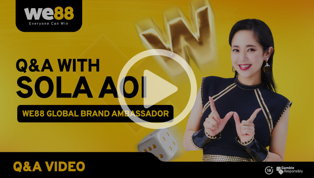 Dengan bangga kami persembahkan Sola Aoi sebagai WE88 Brand Ambassador Global 2022/2023! Sola Aoi merupakan sosok yang produktif dalam industri hiburan dan sangat populer diseluruh ASIA! Sola Aoi merupakan seoarang aktris, model, pembawa acara TV, DJ & Penyanyi.